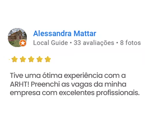 A ARHT Consultoria é especialista em recrutamento e seleção de pessoas com atuação a nível nacional. Apoiamos empresas na busca por profissionais qualificados e alinhados à sua cultura, com processos ágeis, criteriosos e humanizados. Clique e conheça mais sobre quem somos e como podemos transformar o seu time.